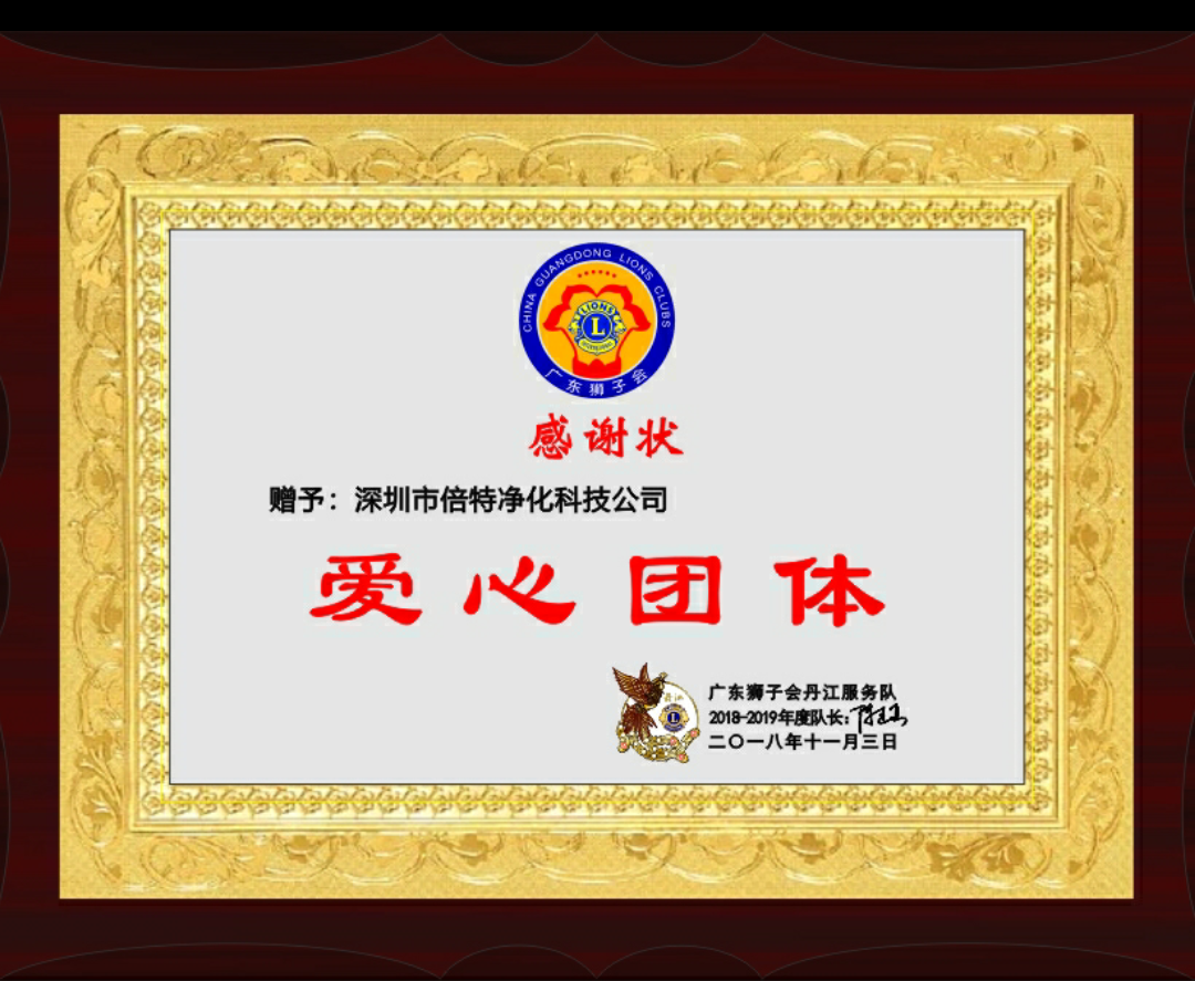 深圳倍特净化科技有限公司于2018年度,为长期服务于大众,热心公益广东狮子会丹江服务队晚会助力。