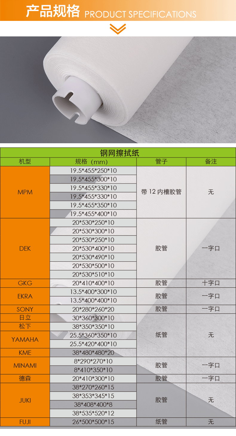 *适用于印刷清洁,SMT印刷机,MPM,KME,PANASONIC,DEK,EKRA,JUKI,MINAMI,PANASRET,YAMAHA,FUJI(GPX),SANYO等